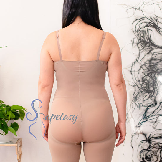 The Angel Full Body seamless shapewear perfectly shapes your whole body for an hourglass figure. It lifts your butt, hugs your legs and features a panel in the torso to flatten the area. The material is firm yet comfortable enough to wear all day. It features an opening in the intimate area to easily use the restroom and adjustable straps for a more comfortable fit.