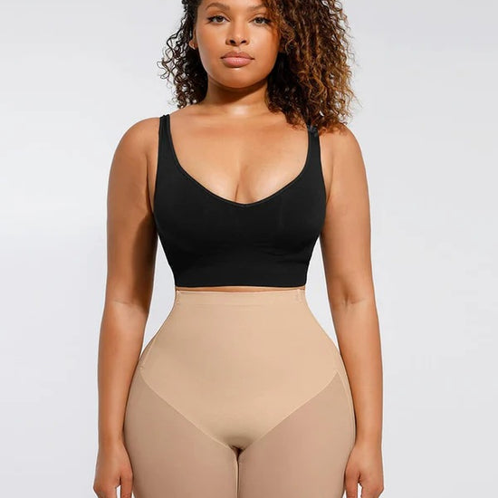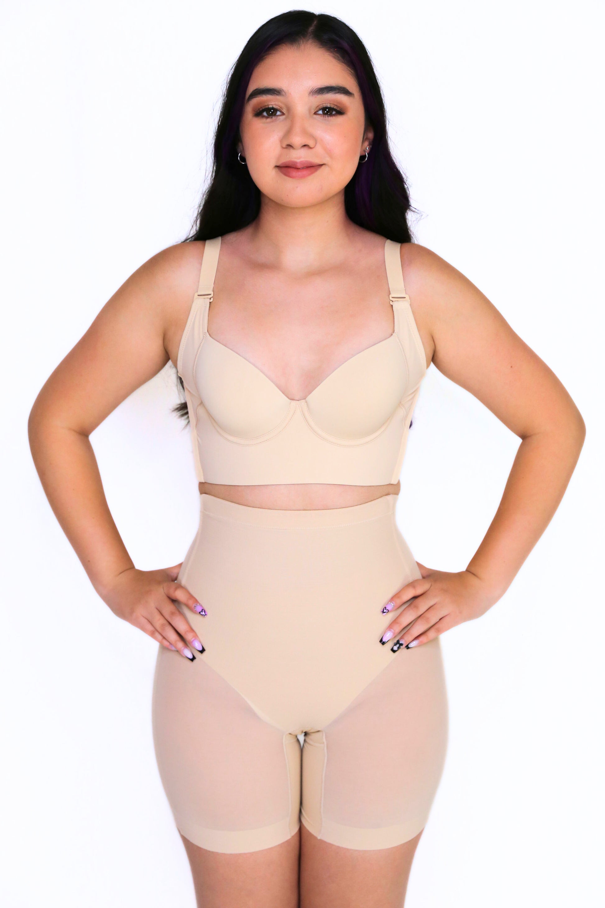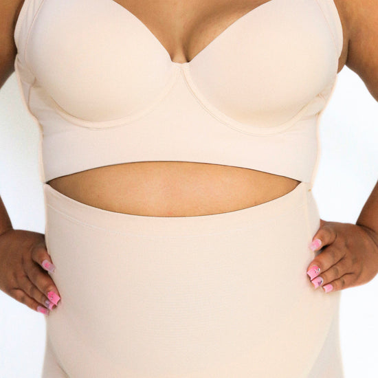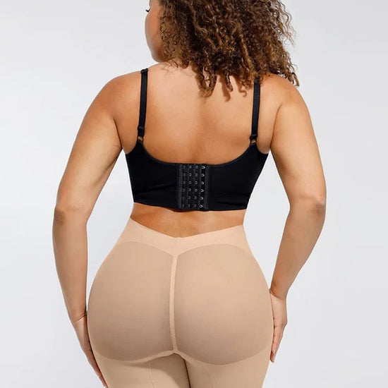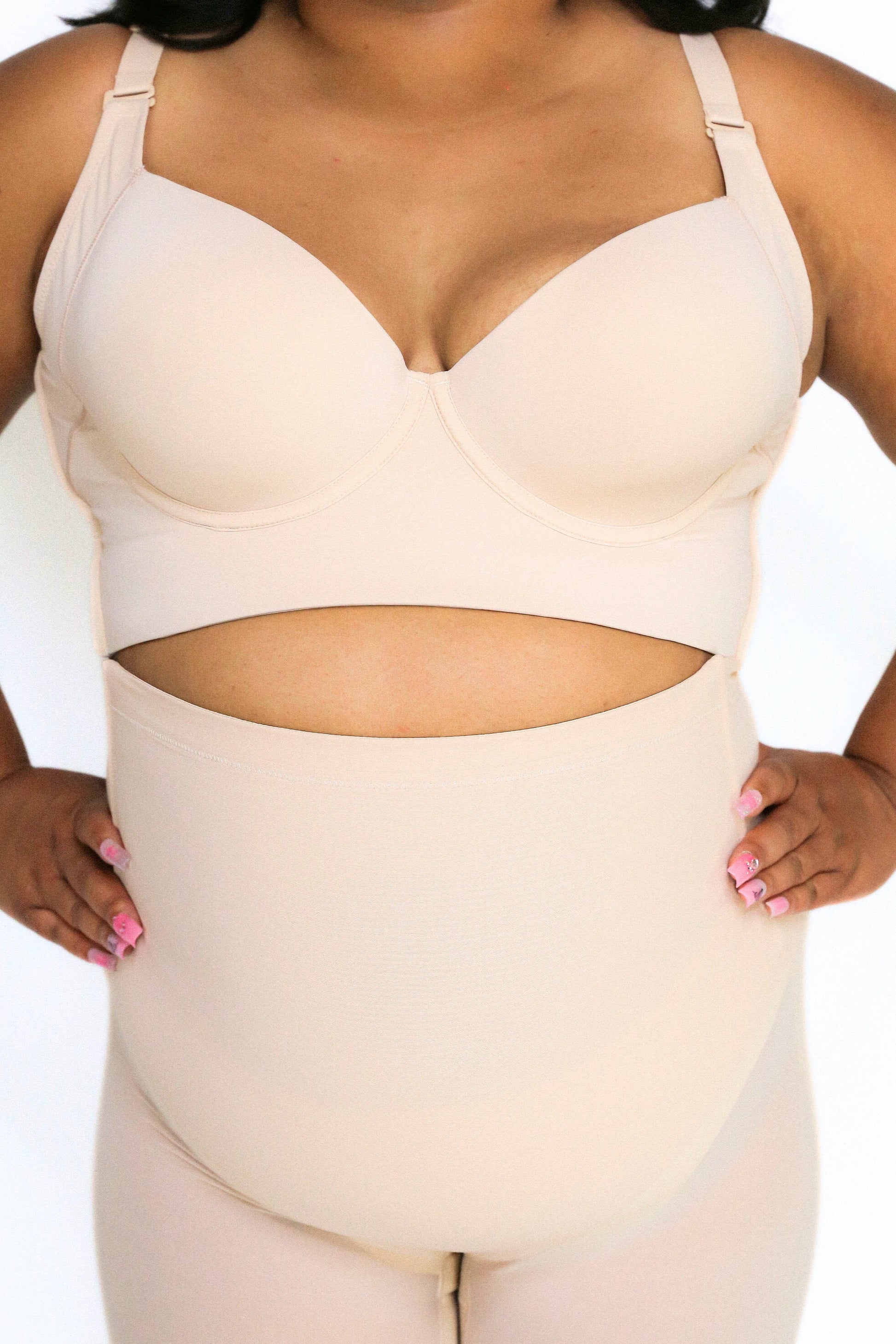 The Nayeli Mid Waist Mesh Faja provides tummy control. The garment lifts your butt to enhance your curves under any clothing and features a lower back to fit with any open back shirts and dresses. This garment has no padding. It also features, two plastic bones and silicone bands to prevent the garment from rolling down, and it has a slit crotch to use restroom.
