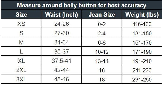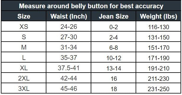 For best accuracy in sizing, measure the biggest part of your waist and follow the sizing chart. Weight is for average heights 5’2”-5’7”. If you are taller, size down, if you are shorter, size up. Size up if you carry your weight in your belly. 3XL Fits up to jean size 18 AND 46" waist, if your waist is more than the item might not fit. See Size Guide
