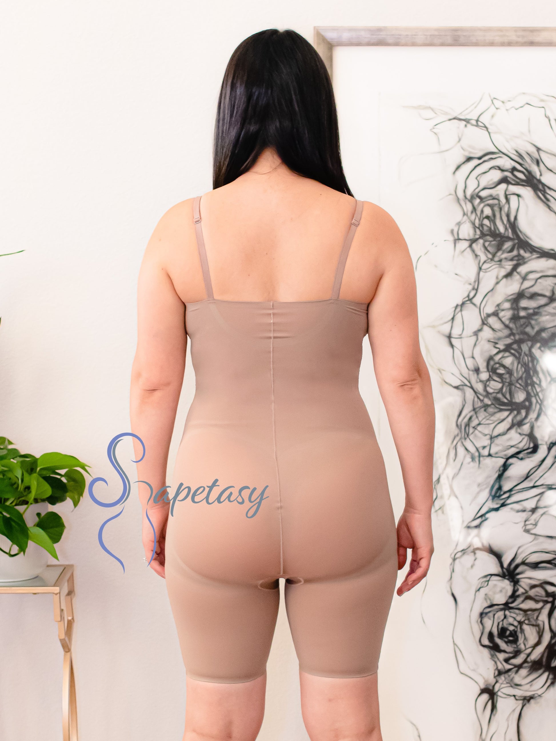 The Angel Full Body seamless shapewear perfectly shapes your whole body for an hourglass figure. It lifts your butt, hugs your legs and features a panel in the torso to flatten the area. The material is firm yet comfortable enough to wear all day. It features an opening in the intimate area to easily use the restroom and adjustable straps for a more comfortable fit.