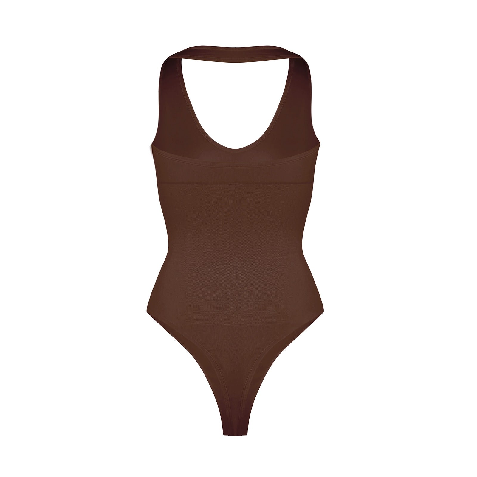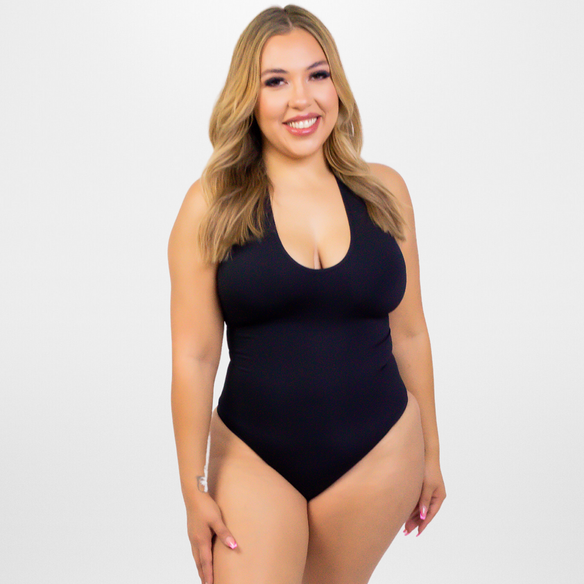 The Izzy Halter Shaping Bodysuit faja thong provides tummy and back compression for a smooth, hourglass look. Izzy provides support for your breasts and removable padding. It also features a clasp bottom that fully opens to use the restroom.