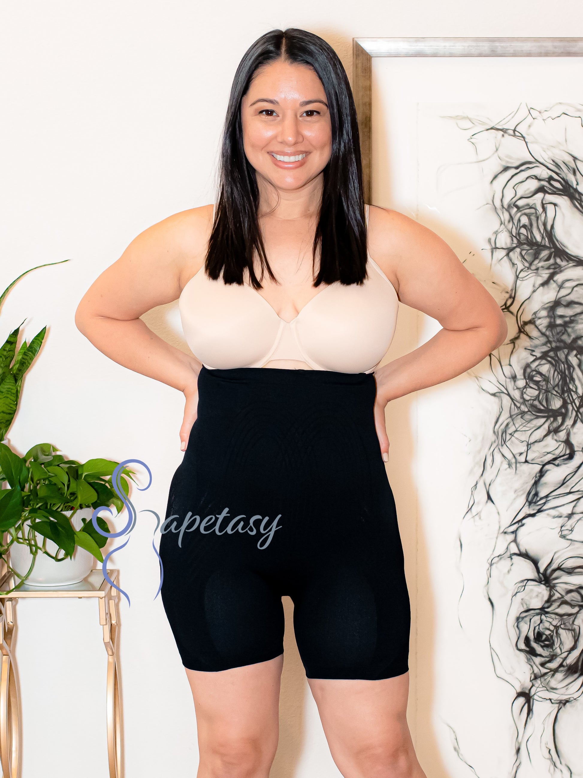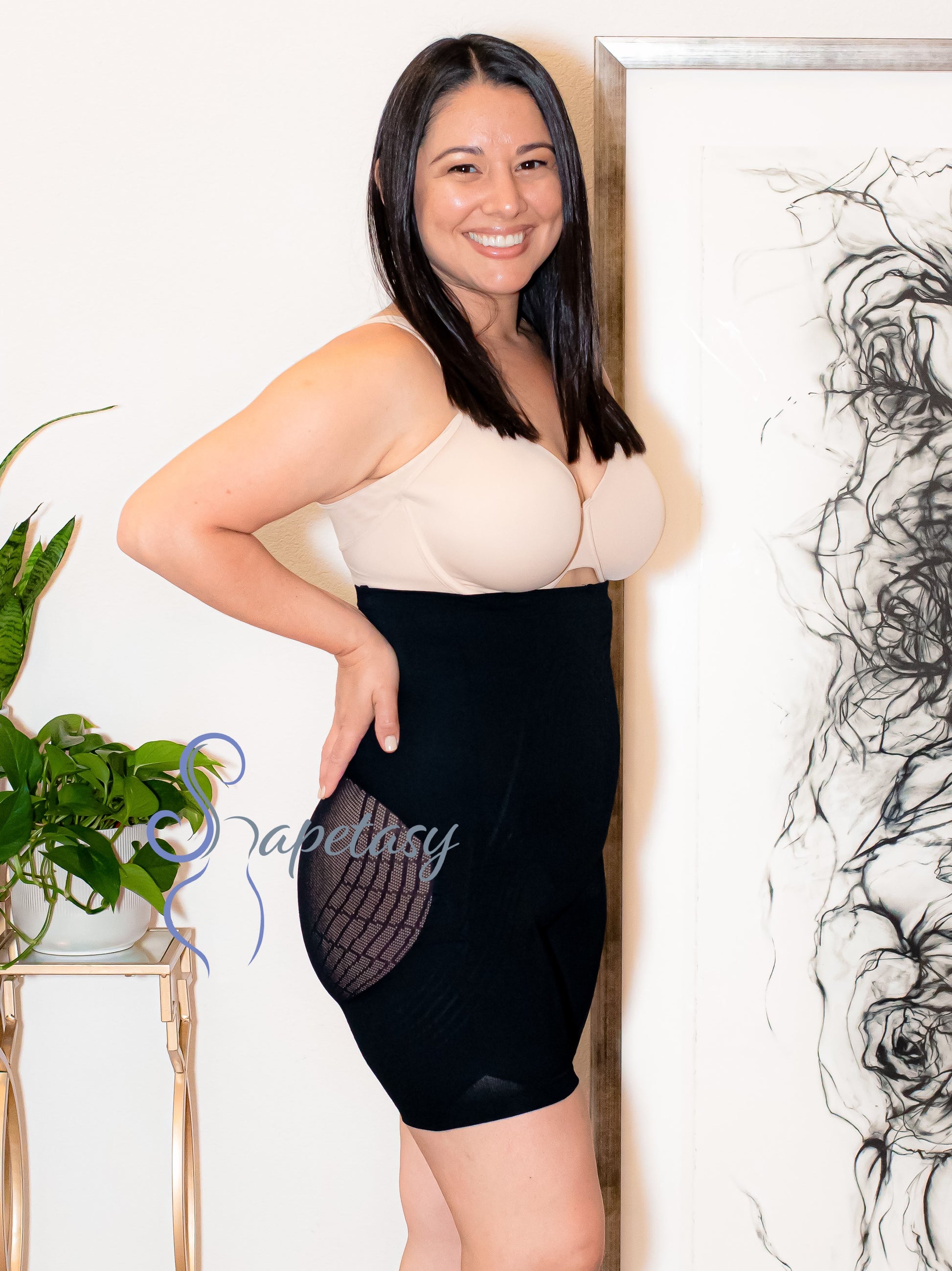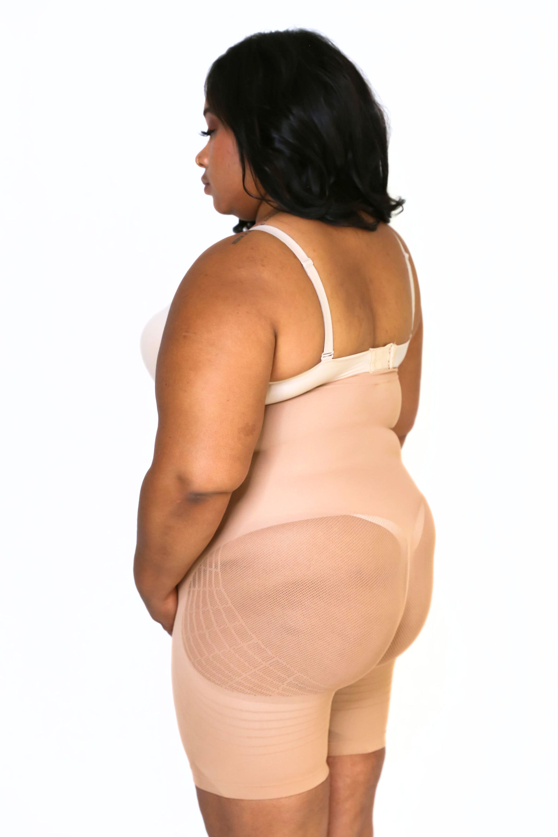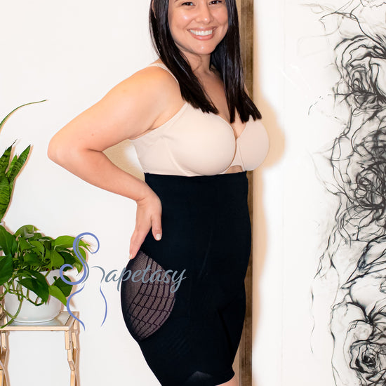 The Monse High Waist BBL Shorts feature a mesh in the butt and hip area that prevents the garment from flattening this region which gives you large hips and butt. They also give you a butt lift and features a panel in the front of the garment that flattens your tummy, back, and upper back, and goes low to hide the "FUPA". Monse BBL shorts are seamless so you will not be able to see it through your clothing. It comes with removable and adjustable straps and one bra strap so your Monse can stay on all day.