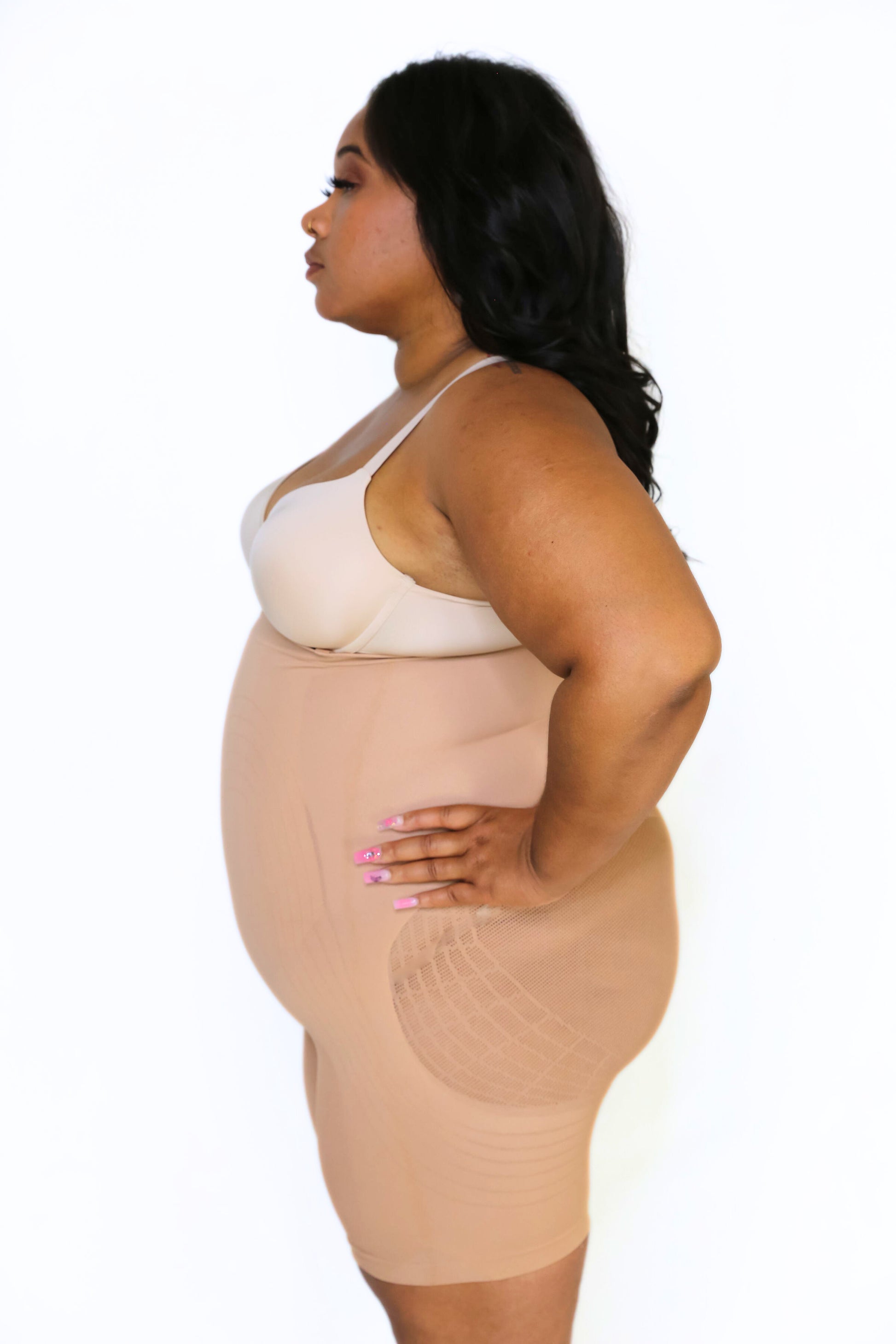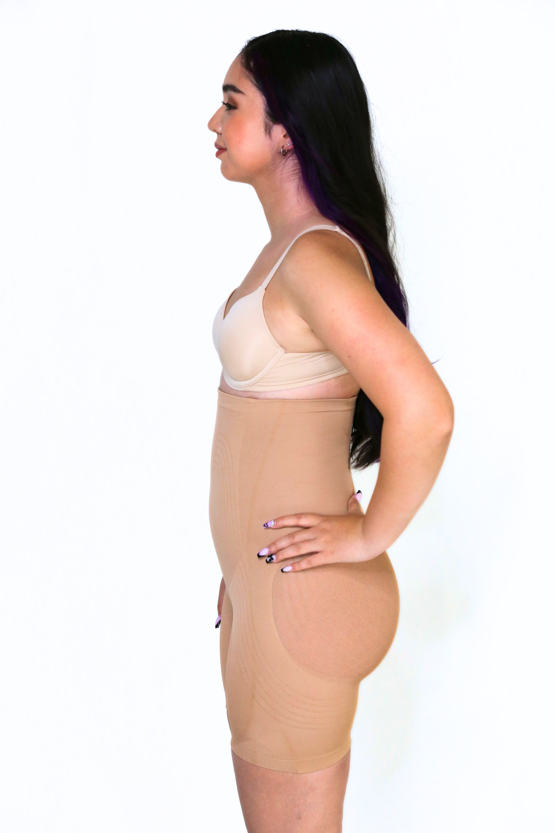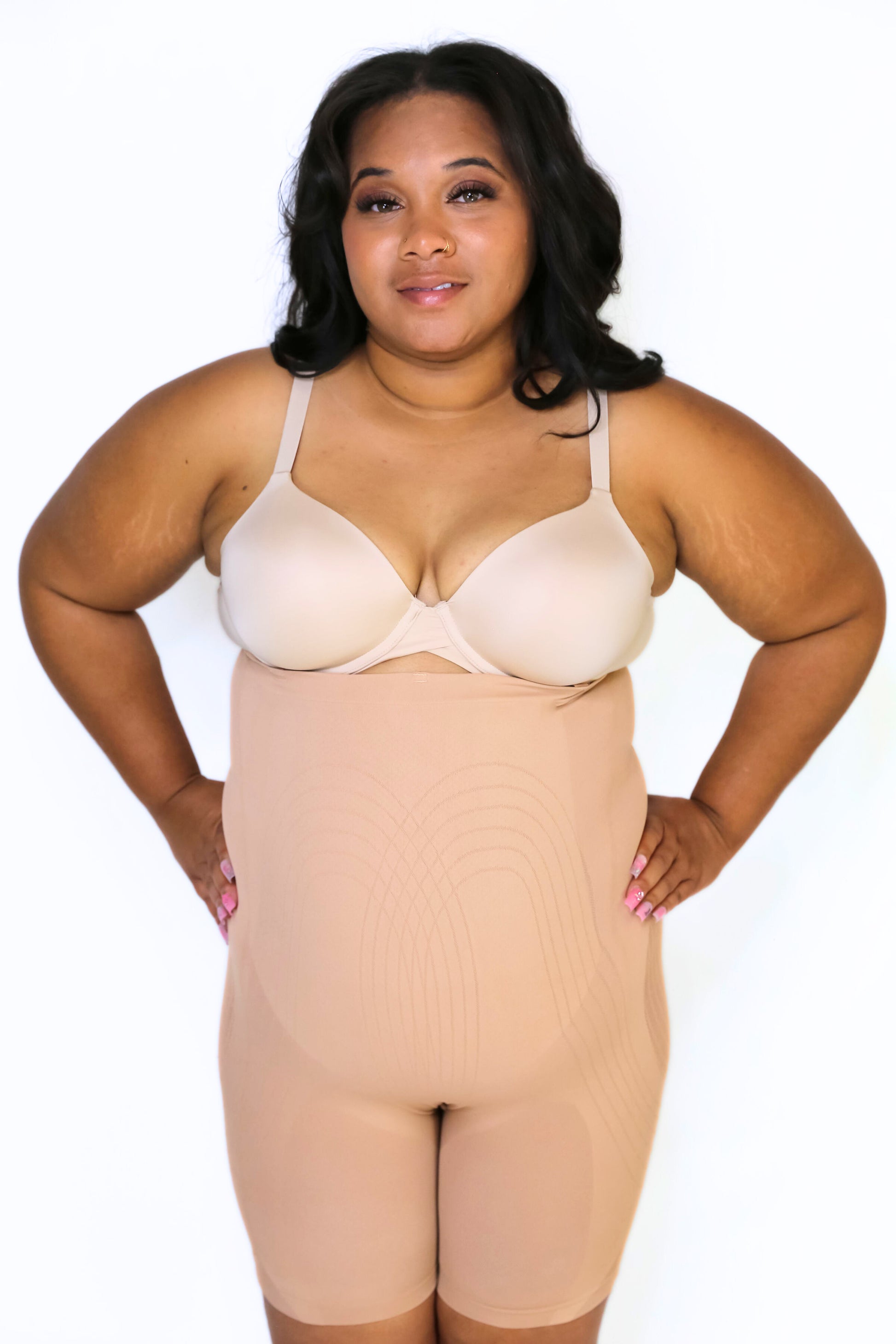 The Monse High Waist BBL Shorts feature a mesh in the butt and hip area that prevents the garment from flattening this region which gives you large hips and butt. They also give you a butt lift and features a panel in the front of the garment that flattens your tummy, back, and upper back, and goes low to hide the "FUPA". Monse BBL shorts are seamless so you will not be able to see it through your clothing. It comes with removable and adjustable straps and one bra strap so your Monse can stay on all day.